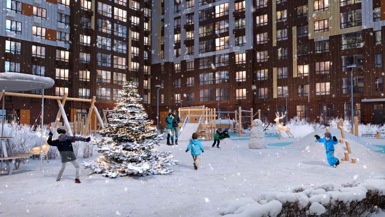 Во дворах жилого комплекса разместятся благоустроенные зоны отдыха, детские и спортивные площадки, а также бульвары для прогулок.